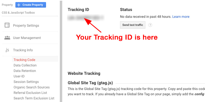 You can follow the steps below to obtain your Google Analytics Tracking ID, which you will need to copy and paste into two seperate locations within the script. These locations has been marked ADD_YOUR_TRACKING_ID_HERE for your convenience.