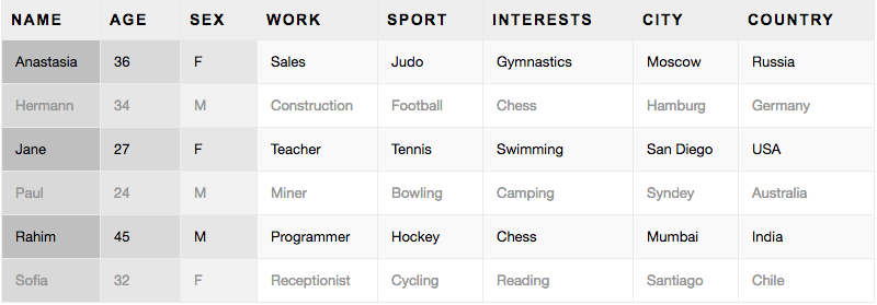 Table Sorter is lightweight, works across all the major browsers, and has been configured to support both HTML and CSV table data. Click any of the column headings to alphabetically sort via that column.